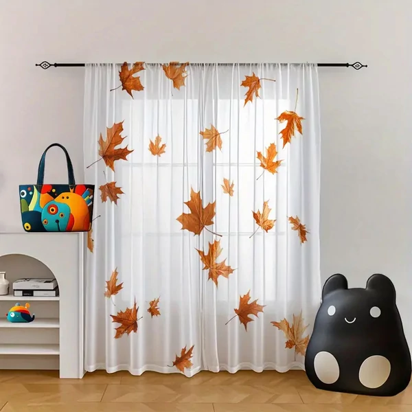 Táto dekoratívna priesvitná záclona dodá vášmu domovu prirodzenú atmosféru vďaka motívu jesenných listov. Je vyrobená z ľahkého, vzdušného materiálu, ktorý krásne prepúšťa svetlo a zároveň elegantne zdobí okno.