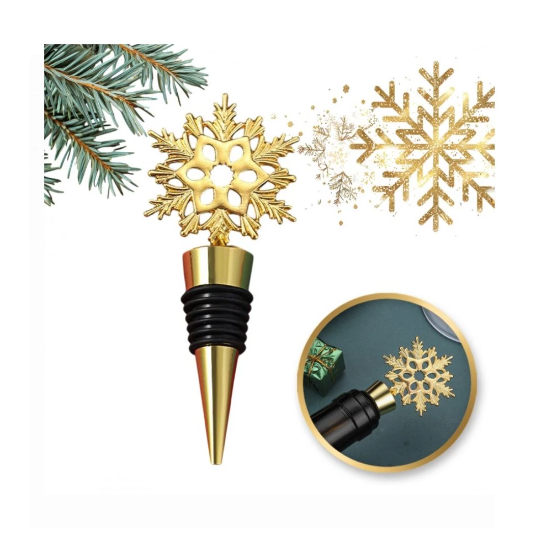 Štýlová a praktická zátka na fľašu vína so zlatým motívom snehových vločiek, ktorá dodá stolu slávnostnú atmosféru. Kovové telo vyžaruje eleganciu, zatiaľ čo silikónové tesnenie zaručuje zachovanie arómy a sviežosti vína. Perfektný doplnok na vianočné večere, slávnostné oslavy alebo ako darček.